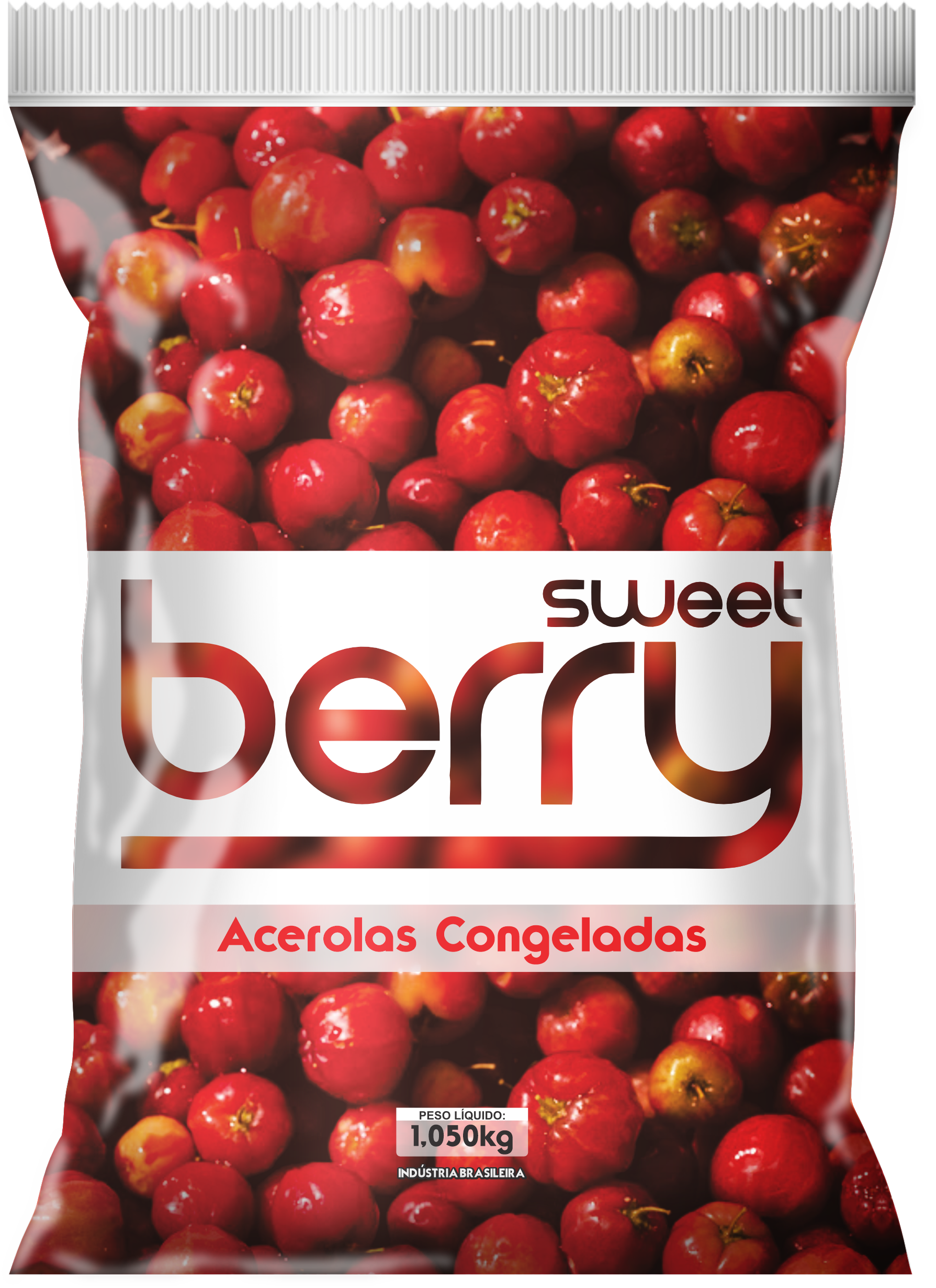 Acerolas congeladas, uma excelente fonte de vitamina C, ideais para sucos naturais, geleias, sobremesas e receitas saudáveis.
